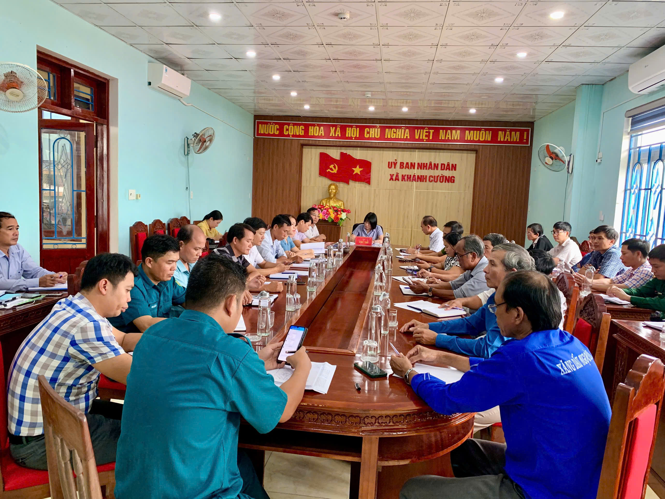 Ban Chỉ huy Phòng thủ dân sự xã Khánh Cường họp khẩn triển khai công tác phòng, chống bão số 13 trên địa bàn xã