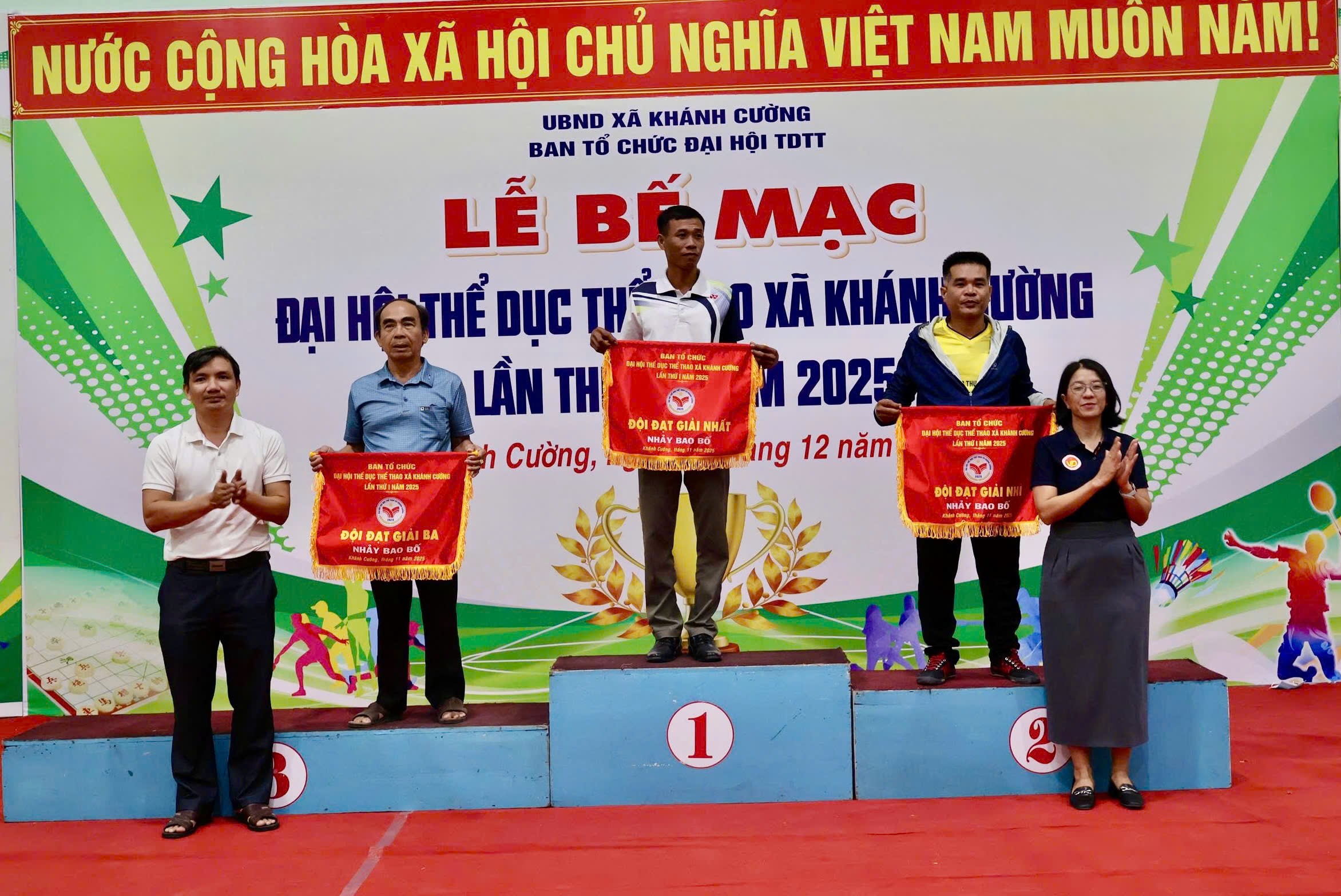 Trong không khí thi đua sôi nổi, thiết thực lập thành tích chào mừng thành công Đại hội đại biểu Đảng bộ tỉnh Quảng Ngãi lần thứ nhất, nhiệm kỳ 2025 – 2030, tiến tới Đại hội đại biểu toàn quốc lần thứ XIV của Đảng và thực hiện Kế hoạch số 35, ngày 25/8/2025 của UBND tỉnh Quảng Ngãi về việc tổ chức Đại hội Thể dục thể thao cấp cơ sở tiến tới Đại hội Thể dục thể thao tỉnh Quảng Ngãi lần thứ I năm 2026 và tham gia Đại hội Thể thao toàn quốc lần thứ X năm 2026. Xã Khánh Cường đã tổ chức thành công Đại hội Thể dục thể thao cấp xã lần thứ I năm 2025 ,từ ngày 05/12 đến ngày 07/12/2025 với 06 môn thi đấu gồm: Bida, Cờ tướng, Cầu lông nam – nữ, Kéo co, Đẩy gậy Nam – Nữ và Nhảy bao bố. Đại hội đã thu hút đông đảo vận động viên tham gia, tạo khí thế vui tươi, đoàn kết trong Nhân dân trên địa bàn xã.