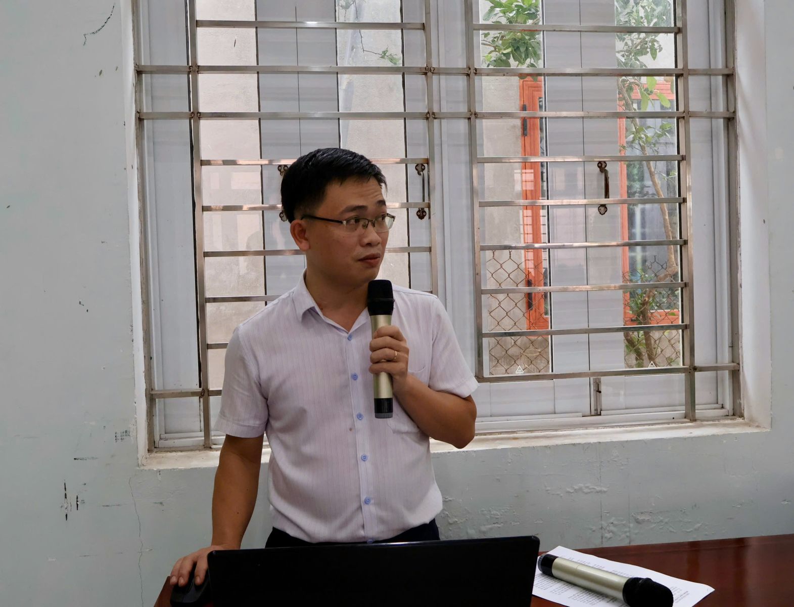 Đồng chí Trần Minh Thường - Phó Chánh Văn phòng Đảng uỷ xã triển khai các nội dung tại hội nghị.