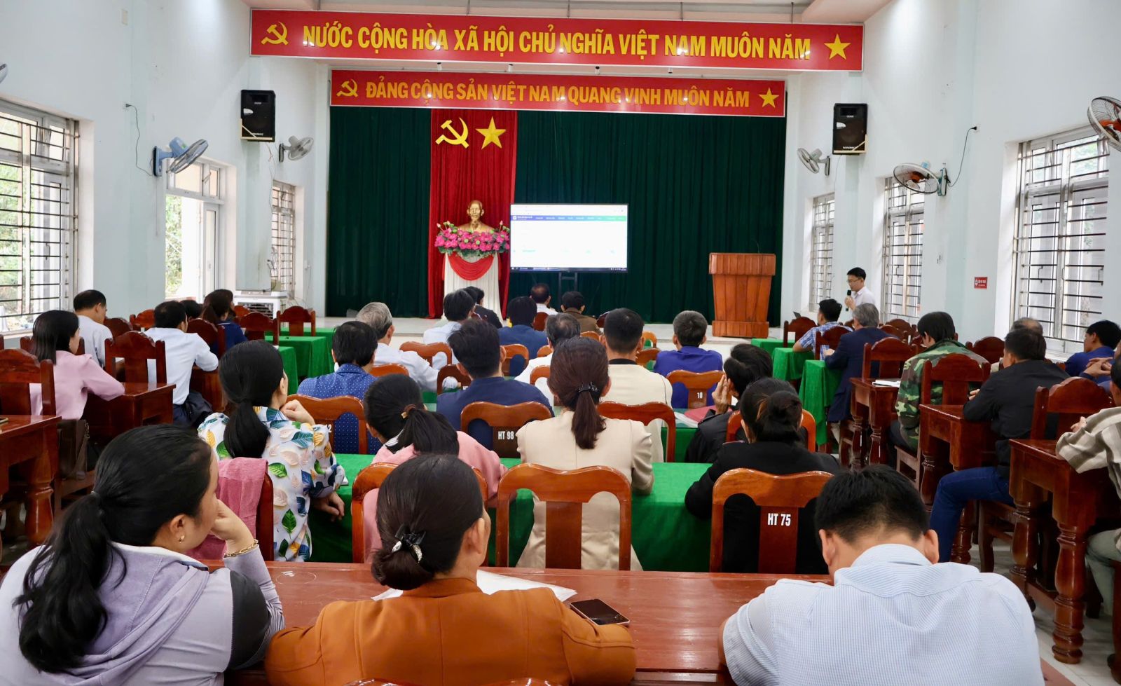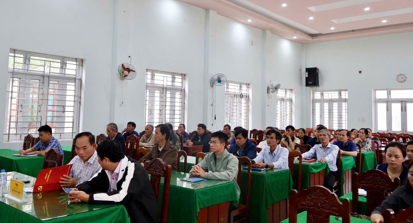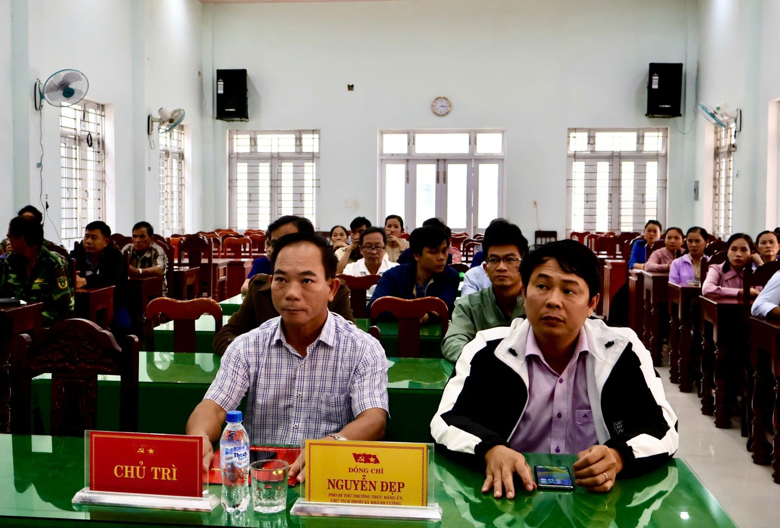 Đồng chí Phó bí thư Đảng uỷ xã và đồng chí Phó Chủ tịch UBND xã tham dự hội nghị.
