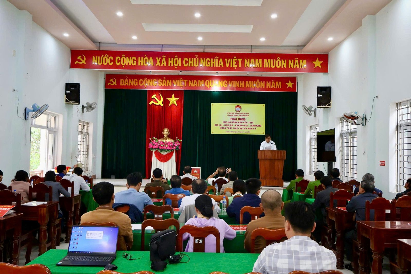 Uỷ ban Mặt trận Tổ quốc Việt Nam xã Khánh Cường tổ chức Lễ phát động ủng hộ đồng bào các tỉnh miền Trung - Tây Nguyên bị thiệt hại do mưa lũ.